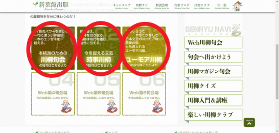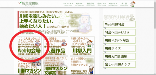 上部にある赤丸の「川柳ナビ」がWeb句会の入口です。こちらをクリック!