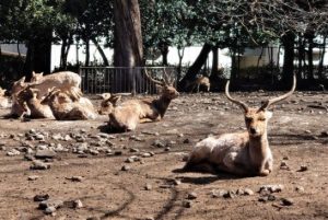 境内の鹿たちにあいさつしたり(ガン見の右の子、ちょっと顔がこわい?)