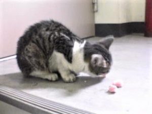 17年前の2006年秋、川柳猫ムギューが突然現れたのもビルのドア前でした。