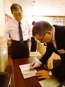 お互いのご著書を購入しサインし合っていた川上勉会長と渡辺柳山さん。