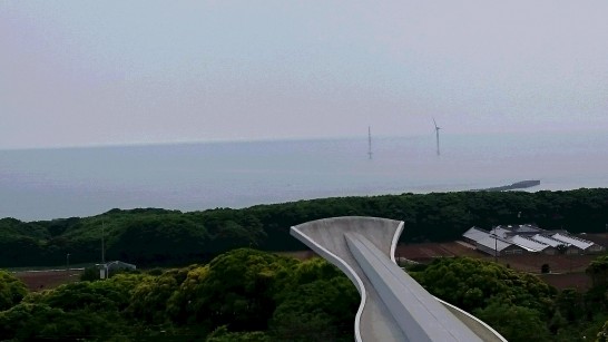 一日券500円で乗り放題降り放題、とはいうものの時間的にはどこか1箇所で降りて1時間半ほど観光するのが許されるせいいっぱいだったので、どこで降りようかと迷ったけれど、結局最後のバス停の「地球の丸く見える丘展望館」へ。この展望台に立つと360度のうち330度が水平線だという不思議な感覚DSC_0027のある展望台、この日は少し曇っていたのが少少残念でしたが、やはりどの角度を見渡しても壮観でした。写真手前右に写っているのは「日比友愛の碑」。フィリッピンのマヨン山に向かって建てられているそうです。周辺を散策した後、さあバス停へ向かおう、としたときにこの大会主催の観光バスとばったり遭遇。この場面はなんだか傑作でした(笑)。