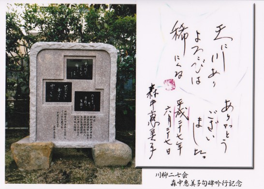 森中惠美子さんのこの句碑は昨年7月23日の除幕式のときにも拝見、感動した覚えがあるのですが、およそ1年の月日の中でどことなくさらに風格を