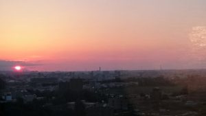 イン時にフロントで「予約時よりグレードアップした部屋をご用意させていただきました」と通された18階の部屋からの札幌市内の雄大な景色を眺めているうちにおかげさまですっかり癒されたようです。手前には北海道大学の緑、遠くはぼんやり霞んで見えないけれど海のようだな、と思っていたら後で日本海側にあたる石狩湾だと教わりました。窓から独占できた夕焼けもこんなに美しくて心が洗われるようなひとときでした。