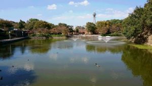 (写真1枚目は慶沢園の南門、ここでチケットを買って入りました。2枚目は南門を入ったところで出逢った色とりどりの菊の花。3枚目は、北門を出て、大阪冬の陣では徳川家康の本陣になり大阪夏の陣では真田幸村の本陣となった「茶臼山の戦い」の舞台である茶臼山へ向かう赤い橋から写した河底池。ずっと先に大阪のシンボル・通天閣が見えます。その手前の茶色い建物は天王寺動物園の入り口かな)