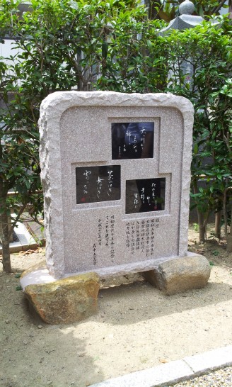 今日は大阪・池田市の託明寺(たくみょうじ)で行われた森中惠美子先生の句碑除幕入魂式に参加させていただきました。出席者全27名。メンバーがお世話役を務められた「川柳五月山」とは川柳文学コロキュウムの前身である川柳コロキュウム螢池のときに短期間でしたが少しご縁があり、その繋がりで招いていただいたのだと思います。