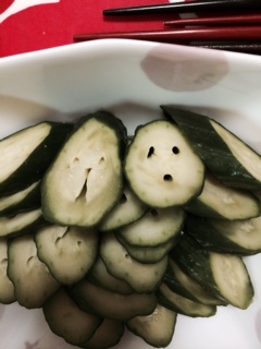 食べ物が顔に見えることはよくありますが、このキュウリは表情豊かでしょう。つぶやきが聞こえたら楽しいのにね。でも確かにこれだけは写真が逆さまなのでした。よく気がついて下さいました。「大発見で賞」を差し上げます (^o^)