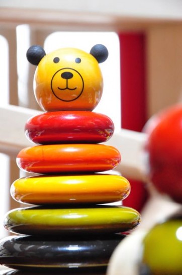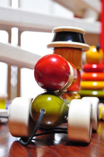 カラフルなおもちゃですね。確かウチの子どもたちの最初のおもちゃも木でした。