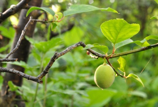 この実は大きく見えますが本物は可愛らしいのです。写真だと林檎くらいに見えそうですね。花にしても実にしても、ただの木の枝からいつのまにか育ってくるのがどうしても不思議でたまりません。誰に教わらなくても、間違いなく梅には梅の花が咲くし梅の実がなるし・・・。あれこれ習っても身に付かない自分を思うと、自然は偉大で素晴らしいね。比べるのも可笑しいけれど。