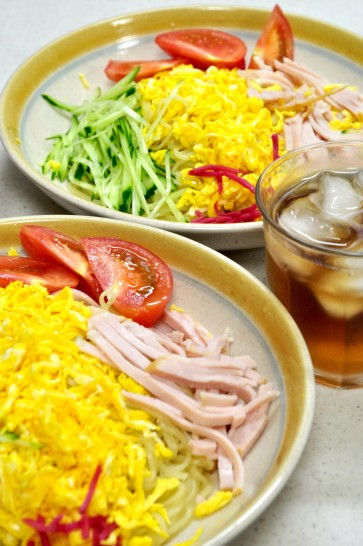 今年初めての冷やし中華でした。昔大切な人をもてなすために、前の日にも練習した思い出の?メニューです。こうしてみるとワンパターンの具にも工夫が欲しいですね。反省です。