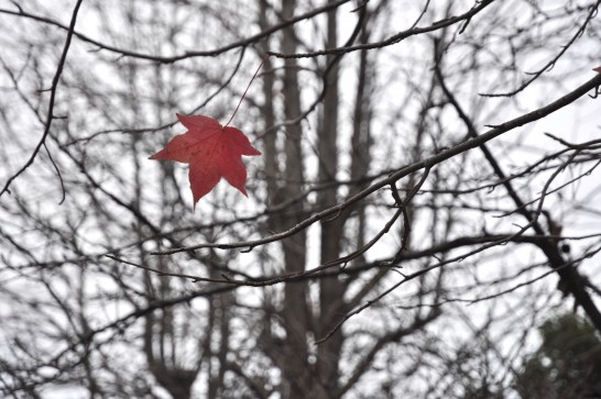 赤い一枚の葉は、何かを暗示するように頑張っていますね。