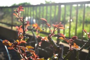 ウチの一重咲きのバラも芽吹いています。