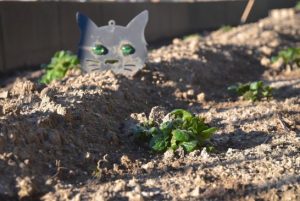 ジャガイモ畑の緑の目のネコちゃんも、ちゃんとお仕事をしていますね、エライエライ。