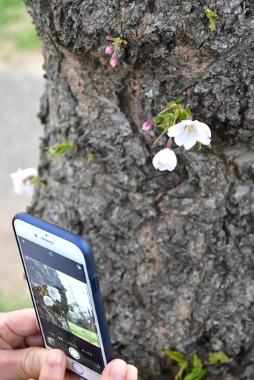 桜の精は風景にハマりすぎていて思わず立ち止まってしまったのでした。青空の時もそうでない時も、それなりの物語になりそうな土手の道です。この後どの木も薄緑になる季節も大好きです。