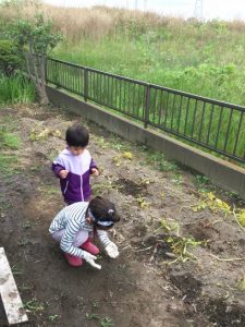 恵さん おはようございます。雨も上がり、紫陽花が咲いて舞台の準備はOK。みんなでシートを外しジャガイモの収穫祭でしたか。ダンゴの好きなお姫さま、と王子さまをお迎えしての年1のイベントですね。茎の根元に手を差し入れると「アッタ」「大きいよ」と姫、「ボクのはこんなに大きいよ」とお姫さま。私も生き抜くために小3の時始めてジャガイモを探り当てたときの感動を忘れません。新鮮な食材のポテトサラダもおいしいでしょうね。私も大好き。