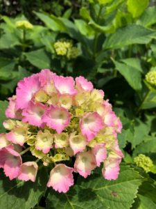 天候が不順ですね。梅雨の特性なのかな?裏のマンションの猫の額のすきまから顔を見せるガク紫陽花が日増しに美しい色合いへと変化しています。他の花たちも咲き始めました。「きれいねえ!」と声をかけながらいつもながめています。4本の桜たちはもはや公園であることを忘れ森化しています。背の低い私でさえ伸ばしている枝葉に頭をぶつけそうになっています。