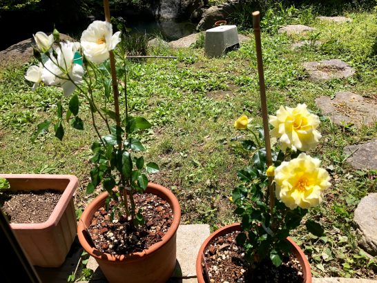 写真の撮りようでたくさんのバラにも見えますが、実は家にはまだ3本。ちゃんと育ってくれたら増やしてもいいかなと園芸部長が呟いていました。専門家の話を聞くと一年中何かしらの手入れが必要とか…。野菜もそうですが生きているものは本気で世話をしてあげないとかわいそうですね。