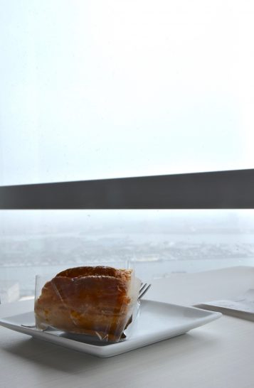 フランスパンみたいに見えるけどアップルパイなのかな~?海辺でいただいたのかな?波が見えます。