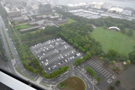 この高さで4階というのは信じられないでしょう。エレベーターで登ると中は不思議な作り。階段もあったから今度は歩いてみてもいいかな。雨で視界が良くない分は想像力で補います。こんな一日もあったり、草取り三昧の一日もあったり。毎日が新しい大切な時間です。