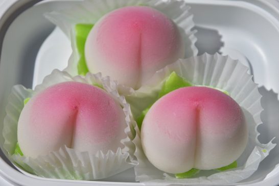 花よりも和菓子の方がいいなあ。本物の桃ならもっといいのになあ。ジュルジュルってかぶりついてても口のまわりもベチョベチョって、サイコーのヨロコビだぜい。(エムジャナイ!)