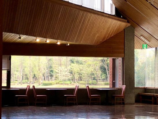 かつてこのような木目調のロビーのあるホールで句会をやったなあ、と思い出しました。