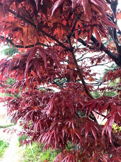このお写真をみて、ふと家にも赤いもみじがあったなあ、と庭を見たらこれと同じ種類がありました。午後の陽射しを浴びて赤というか臙脂のような色合いです。