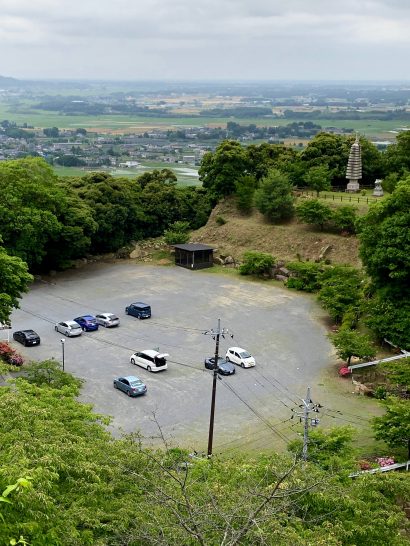 この長い石の階段を上ったのですね。ドキドキはあはあギシギシに当てはまらなければ梅雨寒なんかなんのそのです。駐車場の車の小ささで随分と上った証明ができていますね。どの車だろうって探しました。きっと電柱に隠れているのがそうでしょう。ちゃんと屋根閉めてきたんでしょうね。