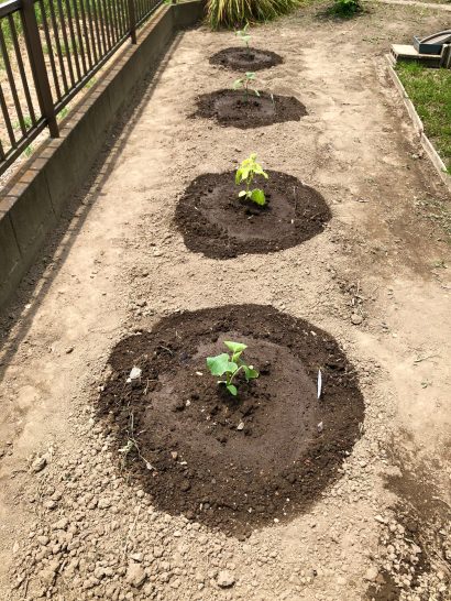 夏とはいえあまりの日差しでかわいそうな苗ですが頑張って育ってくれるといいなぁ。