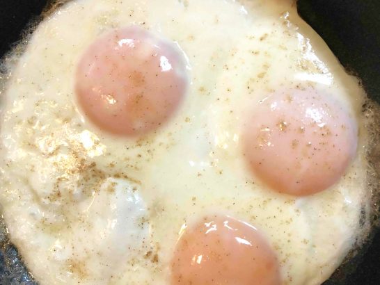 朝の目玉焼き、ほんわか湯気が漂ってきました。