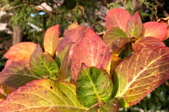 秋にはしっかり緑色だったアジサイも