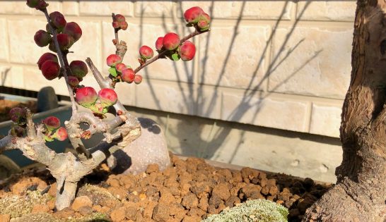 まだ咲くもんかと木瓜動き出した薔薇