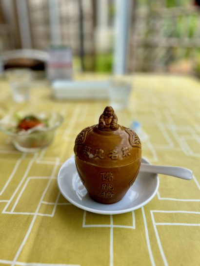 壺入りの薬膳スープをご存知でしたか。入れ物だけでもインパクト大。中身は少しでしたが気分はかなりアップしましたよ。似たようなものを家でも作れたらいいな。