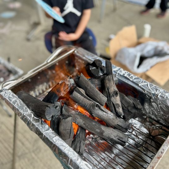 バーベキューは雰囲気だけ参加させてもらいます。炭火を見ていたら家の中でも炭を使っていた頃を思い出しました。煮炊きにも掘り炬燵にもおばあちゃんの火鉢にも。四角い炭俵、上手に炭を切る炭屋のおじさん、薪を燃やした後の消し炭のこと。若い人たちの火起こしに口を挟んだりして老害などと言われないうちに退散しましょう。