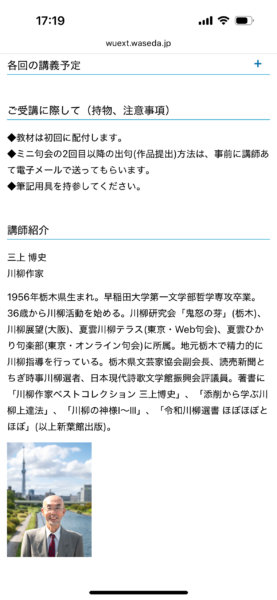2025年12月9日のブログ「今年も終わりに近づいて…」で言及したが、早稲田大学エクステンションセンター(早稲田大学オープンカレッジ)の川柳講座が4月からいよいよ始まる。2月5日に公式ホームページに私の担当科目の紹介が載った。