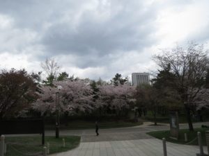 北国の春は遅い。余所の地域では真夏日などと言っている頃、ようやく桜が開花する。そして連休の辺りが満開となる。札幌の花見と言えば円山公園ということになるが、ここは花より「ジンパ」なのだ。ジンパとはジンギスカンパーティーのこと。花の下でジンギスカンを肴に酒盛りをする。ジンギスカンの匂いが公園に充満し、コンロの熱気は桜によくないそうだ。桜にとっては迷惑な話だし、年々桜がまばらになっていくような気がするが、市民にとっては年に一度の花見、仕方がないのかもしれない。花をじっくり楽しみたい向きには、中島公園の方がお勧めだ。ここは飲み食い禁止。市民は桜並木をそぞろ歩いて、花を愛でる。今年のゴールデンウィークは天候に恵まれなかった。それでも雨の公園でジンパは繰り広げられていた。