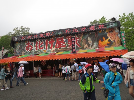 お祭りと言えば金魚すくい、綿菓子、リンゴ飴・・・・、今も昔も変わらない露店が軒をならべている。お小遣いを握りしめて「お祭りに行ってくる」と駆け出した子供の頃。見世物小屋の看板を胸を躍らせて見上げた少年時代を思い出す。サーカスは人さらいに浚われてきた子供たちが、お酢を飲まされて骨を柔らかくされ、曲芸を仕込まれていると信じていた、純な少年であった。