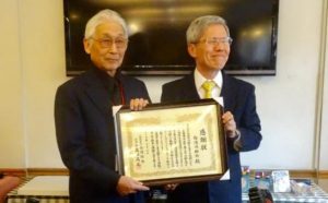披講の前、台湾協会から長年の川柳活動を讃え、感謝状の贈呈が行われた。賞状の受取人は三村昌弘先生にお願いした。