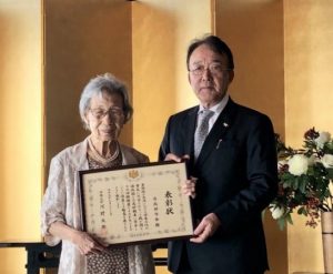 表彰は沼田幹夫大使から、台北俳句会最年長で大正15年生まれの高阿香様に授与されました。