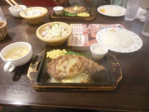 年寄りはそんなに食べられないのでステーキは200グラム、ご飯も「小」にしたがそれでも満腹になった。