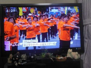 18時からは松山祭りの野球拳踊りが始まった。いつもは直接見るのだが今回は家に帰ってテレビで観た。写っているのは5番目に登場した「松山市シルバー人材センター連」
