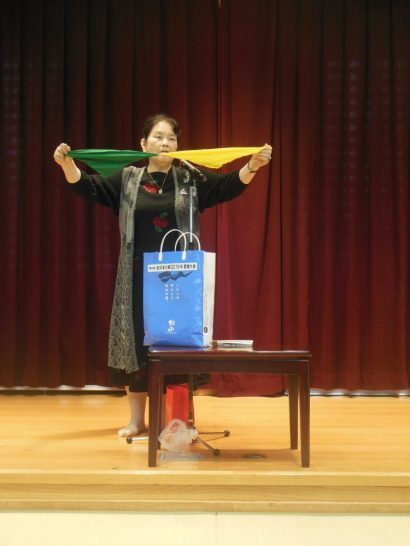 例会の後は宴会。余興のトップバッターは倫子さんの手品。ハンカチの色が変ったり、紐の長さが長くなったり短くなったり、掌の中にハンカチが消えたり・・・・。倫子さんの手品はさざなみ吟社の新年会で何度も見ているが見事なものだった。