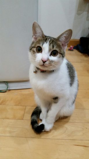同じく孫の家で飼い始めた「まる」。その名のとおり顔も目も丸い。まだ0歳。初めて爺婆の家へ来たが、人見知りが激しく、爺の顔を見ただけで逃げてしまう。そう言えば孫も初めはそうだった。