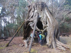 生憎の曇天だったが天狗の森への登山道やセラピーロードで森林浴をした。