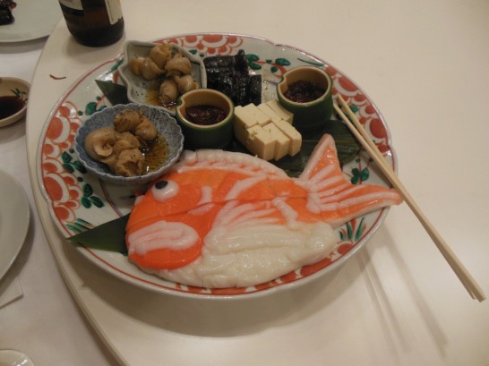 28日7時20分松山発、しおかぜ、のぞみ、サンダーバードと乗り継いで富山についたのは15時10分。遠い!!!。富山駅に着いた頃に大雨になり、ホテルは駅のすぐ近くだったが歩いてはいけないのでタクシーにした。前夜祭の会場までは雨も小降りになっていたので歩いて行った。前夜祭の参加者は約350名、表彰式、挨拶などがあり乾杯までに約1時間かかった。長い!!!!。出された料理は郷土色豊かなものばかりで、写真のものは越中梅貝旨煮、富山の細工蒲鉾、鰊昆布巻、ホタルイカ沖漬け、五箇山豆腐味噌漬け。この後次から次へと出てくる料理はどれも美味しいものだった。アトラクションのおわらおどりも情緒豊かなものだった。私は2年後の愛媛大会に備えてカメラ・ビデオを片手に取材に徹した。