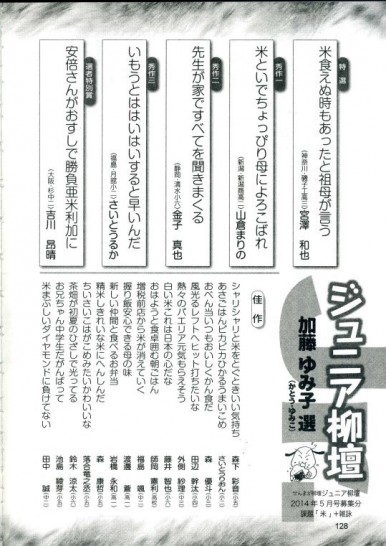 川柳マガジン7月号に嬉しいことがあった。孫の作品が入選していたのだ(佳作の4番目)。