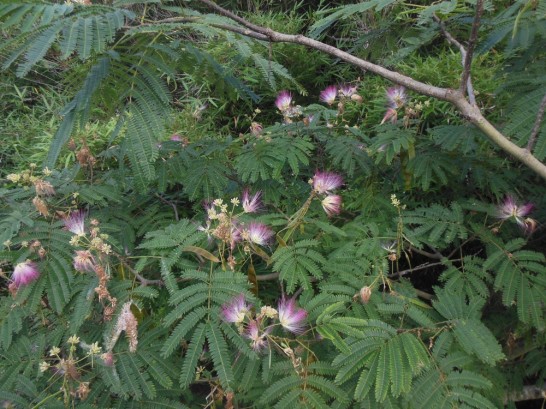 コースの途中に大きなねむの木がある。その木は道路の下の方から生えてきているので、一番上が丁度目の高さになる。手を伸ばせば花に手が届く位置にある。耳を澄ませばねむの木の子守歌が聞こえてきそうな気がする。