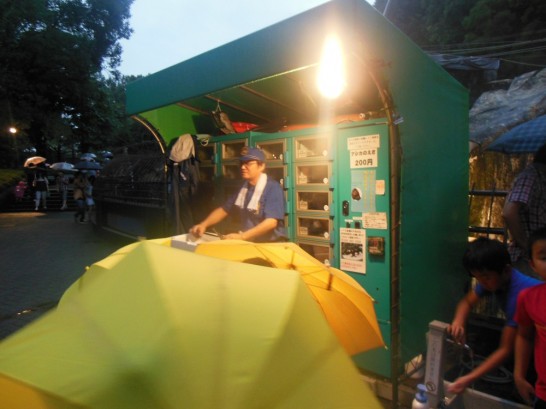 昨夜は孫たちと夜のとべ動物園へ初めて行ってきた。夏休み期間中の土曜日に開催されている人気のイベントで、あいにくの雨にもかかわらず多くの人で賑わっていた。第一駐車場は既に満車で第二駐車場の方へ停めた。先着1500名に配られる団扇は貰えなかったので既にそれ以上の人が入っていることになる。写真はアシカの餌を売っている所、一匹200円のアジがよく売れていた。他にもトラの餌やりもあったが、ここは多くの人が並んでいたので餌やりはパスして見るだけにした。(因みにトラの餌の肉片は1000円)。他にぞう、カバ、キリン、サイ、ライオン、シロクマなどなど昼の動物園と殆ど同じ動物を見ることができた。夜の方が涼しくていい。ここの入園料は大人460円、こども100円、65歳以上の人は100円と極めて良心的。孫たちも十分満足して、動物園を後にしたが爺は少々疲れ気味だった。ここでも婆ちゃんの方は元気そのもので、駐車場まで走って車を取りに行ってくれた、ほかのものはそれを待つだけ。助かる・・・・・・・。