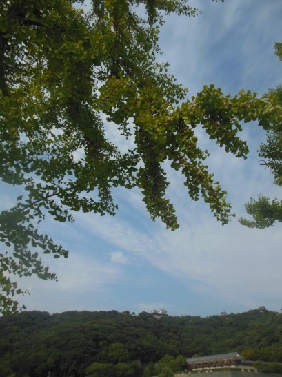 松山城の堀之内公園には多くの銀杏の木が植えられている。先日テレビでぎんなんが生っていると報じられていたので早速行って見た。愛媛県美術館正面からお城を望む所に植えられている木に、写真では見えにくいがぎんなんが鈴なり状態。ぎんなんにも表年と裏年があるのかどうか知らないが、こんなに生っているところは初めて見た。茶わん蒸しが食べたくなってきた。