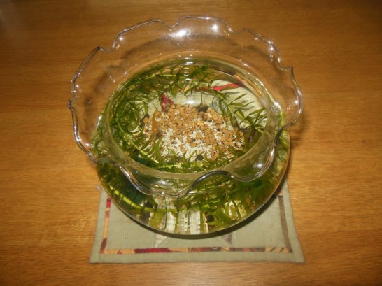 写真は金魚鉢に移したメダカ。メダカも朝の涼しい内に一生懸命勉強しているような気がする・・・・・・・。