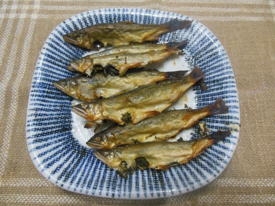 先日知人から肱川の鮎をいただいた。四万十に帰った時など親戚の者からお土産に鮎をいただくことがある。四万十の鮎は最高のお土産になる。今回は愛媛県の肱川のもの。そういえば何年か前肱川の鵜飼舟で鮎を食べたことがあるが、それ以来となる。大きさは小ぶりだったが、この位だと骨も柔らかいので頭から、骨も、はらわたも全て食べることが出来る。天然の鮎は美味しい。