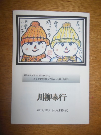 昨日、「川柳奉行」が届いた。表紙の絵手紙からは毎回ほっこり感を貰っているが、特に今回は急にやってきた寒さの中で暖かさを感じる。川柳も絵手紙も心を温かくしてくれる。美智子さんありがとうございます。